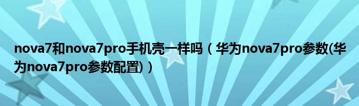 大家好,小常来为大家解答以上问题。nova7和nova7pro手机壳一样吗,华为nova7pro参数(华为nova7pro参数配置)很多人还不知道,现在让我们一起来看看吧!