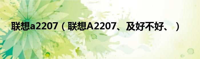 大家好,小常来为大家解答以上问题。联想a2207,联想A2207、及好不好、很多人还不知道,现在让我们一起来看看吧!
