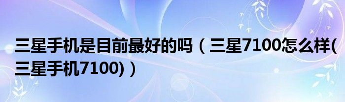 大家好,小常来为大家解答以上问题。三星手机是目前最好的吗,三星7100怎么样(三星手机7100)很多人还不知道,现在让我们一起来看看吧!