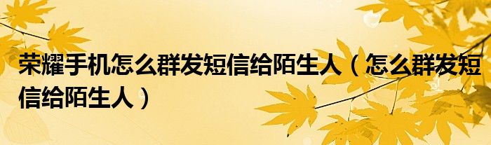 大家好,小晋来为大家解答以下问题,关于荣耀手机怎么群发短信给陌生人,怎么群发短信给陌生人很多人还不知道,今天让我们一起来看看吧!