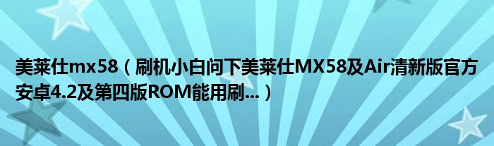 大家好,小常来为大家解答以上问题。美莱仕mx58,刷机小白问下美莱仕MX58及Air清新版官方安卓4.2及第四版ROM能用刷...很多人还不知道,现在让我们一起来看看吧!