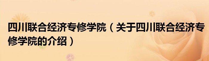 大家好,今天小乐来为大家解答以上的问题。四川联合经济专修学院,关于四川联合经济专修学院的介绍很多人还不知道,现在让我们一起来看看吧!