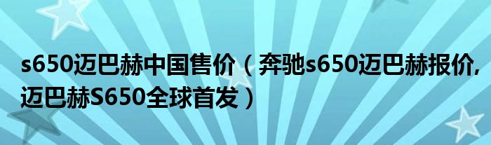 大家好,小常来为大家解答以上问题。s650迈巴赫中国售价,奔驰s650迈巴赫报价,迈巴赫S650全球首发很多人还不知道,现在让我们一起来看看吧!