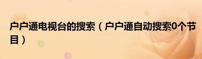 大家好,小晋来为大家解答以下问题,关于户户通电视台的搜索,户户通自动搜索0个节目很多人还不知道,今天让我们一起来看看吧!