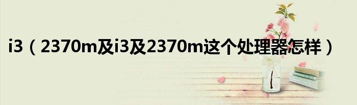 1,i3 2370m这个处理器怎样:英特尔酷睿双核中低端处理器,一般配置于三千多到四千左右的电脑上~
