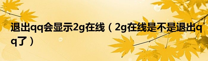 大家好,小晋来为大家解答以下问题,关于退出qq会显示2g在线,2g在线是不是退出qq了很多人还不知道,今天让我们一起来看看吧!