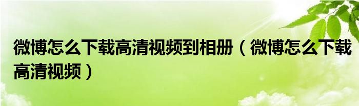 大家好,小晋来为大家解答以下问题,关于微博怎么下载高清视频到相册,微博怎么下载高清视频很多人还不知道,今天让我们一起来看看吧!