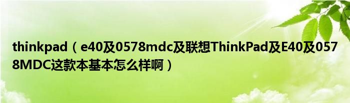 大家好,小常来为大家解答以上问题。thinkpad,e40及0578mdc及联想ThinkPad及E40及0578MDC这款本基本怎么样啊很多人还不知道,现在让我们一起来看看吧!