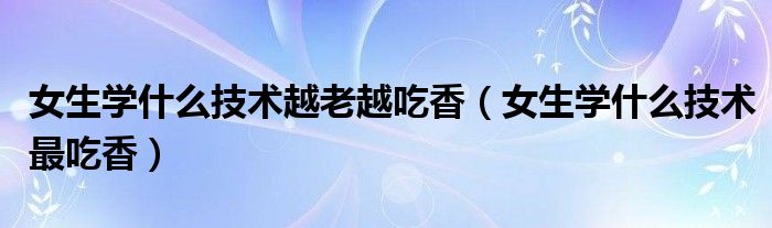 大家好,小晋来为大家解答以下问题,关于女生学什么技术越老越吃香,女生学什么技术最吃香很多人还不知道,今天让我们一起来看看吧!