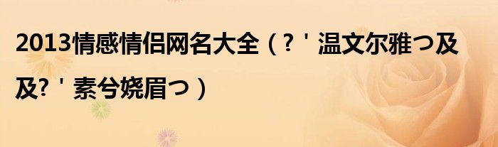 大家好,今天小悦来为大家解答以上问题。2013情感情侣网名大全,?'温文尔雅つ及|及?'素兮娆眉つ很多人还不知道,现在让我们一起来看看吧!
