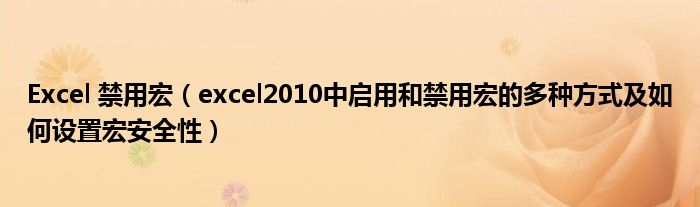 大家好,今天小悦来为大家解答以上问题。Excel 禁用宏,excel2010中启用和禁用宏的多种方式及如何设置宏安全性很多人还不知道,现在让我们一起来看看吧!