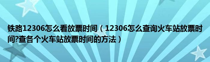 大家好,今天小悦来为大家解答以上问题。铁路12306怎么看放票时间,12306怎么查询火车站放票时间?查各个火车站放票时间的方法很多人还不知道,现在让我们一起来看看吧!