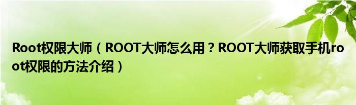 大家好,今天小悦来为大家解答以上问题。Root权限大师,ROOT大师怎么用?ROOT大师获取手机root权限的方法介绍很多人还不知道,现在让我们一起来看看吧!