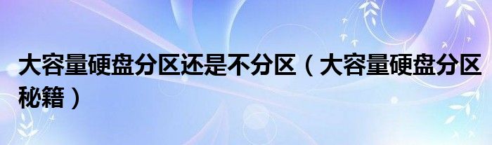 最佳答案大家好,今天小悦来为大家解答以上问题。大容量硬盘分区还是不分区,大容量硬盘分区秘籍很多人还不知道,现在让我们一起来看看吧!目前80GB以上的硬盘已成为装机主流,面对容量如此之大的硬盘,如何进行合理分区使其得到充分的应用是朋友们十分关心的话题。这里,笔者就来说说自己的分区方法供大家...