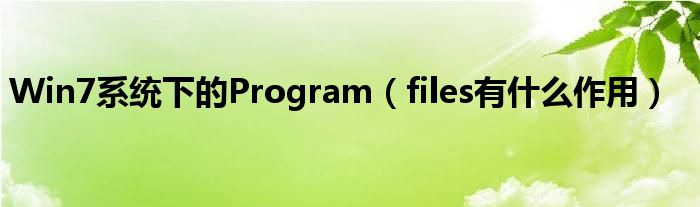 大家好,今天小悦来为大家解答以上问题。Win7系统下的Program,files有什么作用很多人还不知道,现在让我们一起来看看吧!