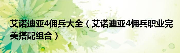 艾诺迪亚4佣兵大全(艾诺迪亚4佣兵职业完美搭配组合)