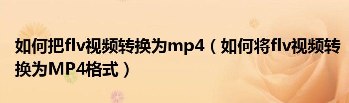 以上就是如何将flv视频转换为MP4格式的方法。