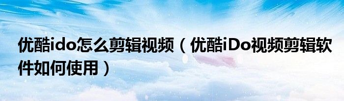 大家好,今天小悦来为大家解答以上问题。优酷ido怎么剪辑视频,优酷iDo视频剪辑软件如何使用很多人还不知道,现在让我们一起来看看吧!