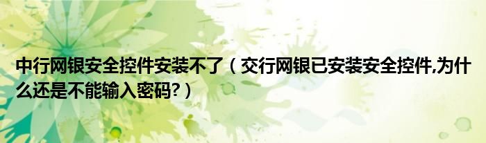 大家好,今天小悦来为大家解答以上问题。中行网银安全控件安装不了,交行网银已安装安全控件,为什么还是不能输入密码?很多人还不知道,现在让我们一起来看看吧!