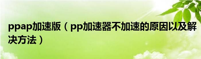 大家好,小太来为大家解答以上问题。ppap加速版,pp加速器不加速的原因以及解决方法很多人还不知道,现在让我们一起来看看吧!
