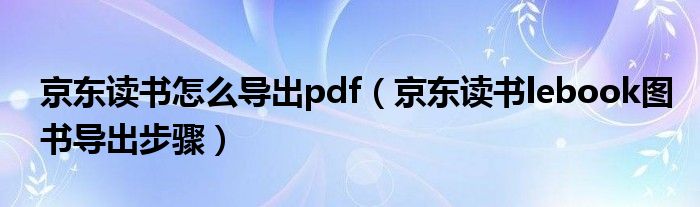 大家好,今天小悦来为大家解答以上问题。京东读书怎么导出pdf,京东读书lebook图书导出步骤很多人还不知道,现在让我们一起来看看吧!