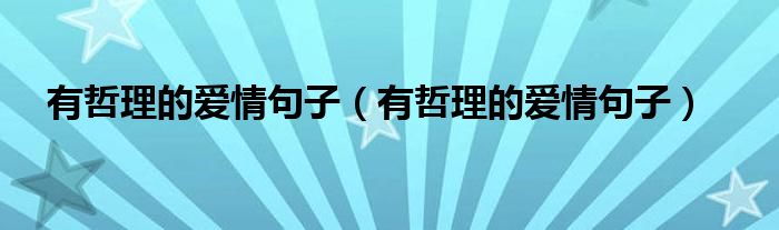 大家好,雨雨来为大家解答以上问题,有哲理的爱情句子,有哲理的爱情句子很多人还不知道,现在让我们一起来看看吧!