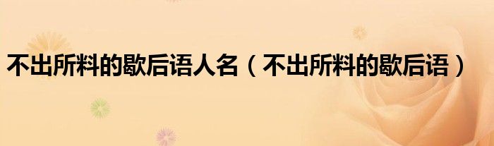 大家好,小晋来为大家解答以下问题,关于不出所料的歇后语人名,不出所料的歇后语很多人还不知道,今天让我们一起来看看吧!