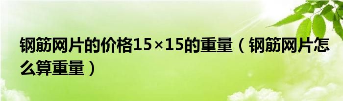 关于钢筋网片的价格15×15的重量,钢筋网片怎么算重量这个很多人还不知道,今天菲菲来为大家解答以上的问题,现在让我们一起来看看吧!