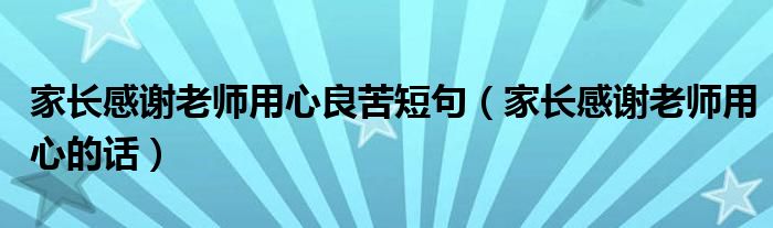大家好,雨雨来为大家解答以上问题,家长感谢老师用心良苦短句,家长感谢老师用心的话很多人还不知道,现在让我们一起来看看吧!
