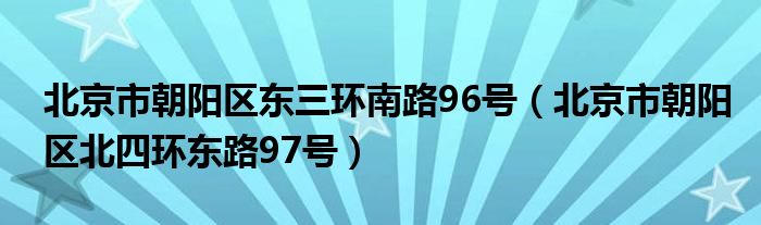 关于北京市朝阳区东三环南路96号,北京市朝阳区北四环东路97号这个很多人还不知道,今天菲菲来为大家解答以上的问题,现在让我们一起来看看吧!