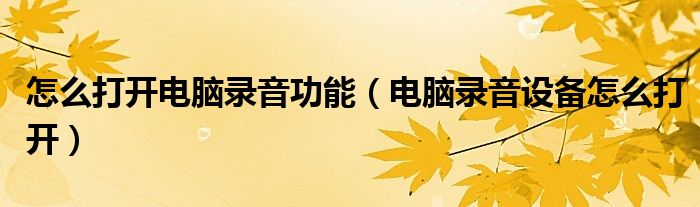 关于怎么打开电脑录音功能,电脑录音设备怎么打开这个很多人还不知道,今天菲菲来为大家解答以上的问题,现在让我们一起来看看吧!
