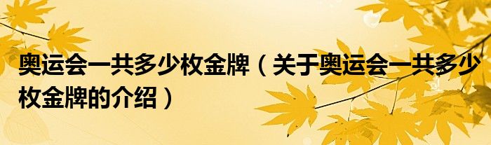 大家好,今天小乐来为大家解答以上的问题。奥运会一共多少枚金牌,关于奥运会一共多少枚金牌的介绍很多人还不知道,现在让我们一起来看看吧!