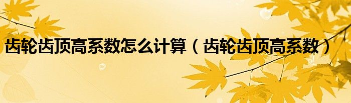 关于齿轮齿顶高系数怎么计算,齿轮齿顶高系数这个很多人还不知道,今天菲菲来为大家解答以上的问题,现在让我们一起来看看吧!