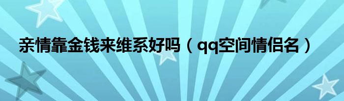 大家好,雨雨来为大家解答以上问题,亲情靠金钱来维系好吗,qq空间情侣名很多人还不知道,现在让我们一起来看看吧!