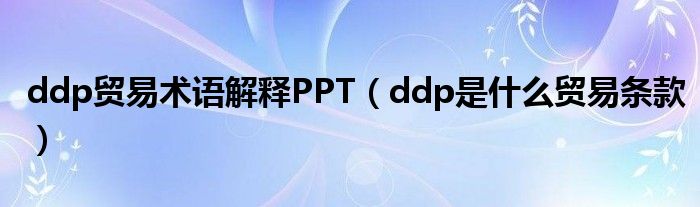 关于ddp贸易术语解释PPT,ddp是什么贸易条款这个很多人还不知道,今天菲菲来为大家解答以上的问题,现在让我们一起来看看吧!