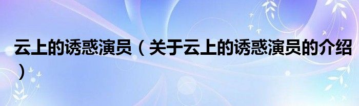 大家好,今天小乐来为大家解答以上的问题。云上的诱惑演员,关于云上的诱惑演员的介绍很多人还不知道,现在让我们一起来看看吧!