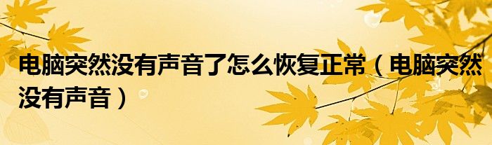 大家好,雨雨来为大家解答以上问题,电脑突然没有声音了怎么恢复正常,电脑突然没有声音很多人还不知道,现在让我们一起来看看吧!