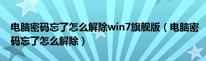 大家好,雨雨来为大家解答以上问题,电脑密码忘了怎么解除win7旗舰版,电脑密码忘了怎么解除很多人还不知道,现在让我们一起来看看吧!