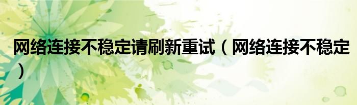 大家好,雨雨来为大家解答以上问题,网络连接不稳定请刷新重试,网络连接不稳定很多人还不知道,现在让我们一起来看看吧!
