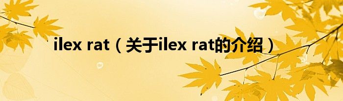 大家好,今天小乐来为大家解答以上的问题。ilex rat,关于ilex rat的介绍很多人还不知道,现在让我们一起来看看吧!