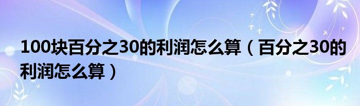 100块百分之30的利润怎么算(百分之30的利润怎么算)