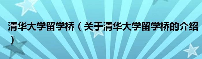 大家好,今天小乐来为大家解答以上的问题。清华大学留学桥,关于清华大学留学桥的介绍很多人还不知道,现在让我们一起来看看吧!