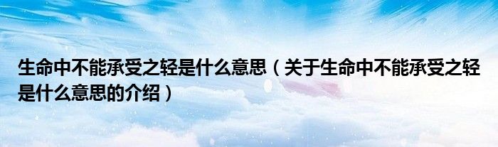 大家好,今天小乐来为大家解答以上的问题。生命中不能承受之轻是什么意思,关于生命中不能承受之轻是什么意思的介绍很多人还不知道,现在让我们一起来看看吧!