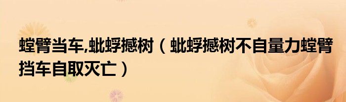 关于螳臂当车,蚍蜉撼树,蚍蜉撼树不自量力螳臂挡车自取灭亡这个很多人还不知道,今天菲菲来为大家解答以上的问题,现在让我们一起来看看吧!
