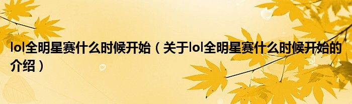 大家好,今天小乐来为大家解答以上的问题。lol全明星赛什么时候开始,关于lol全明星赛什么时候开始的介绍很多人还不知道,现在让我们一起来看看吧!