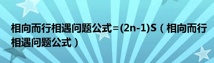 关于相向而行相遇问题公式=(2n-1)S,相向而行相遇问题公式这个很多人还不知道,今天菲菲来为大家解答以上的问题,现在让我们一起来看看吧!