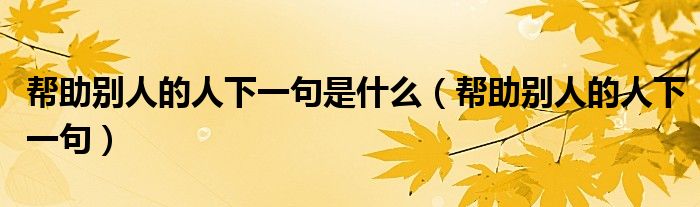 帮助别人的人下一句是什么(帮助别人的人下一句)