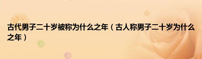 关于古代男子二十岁被称为什么之年,古人称男子二十岁为什么之年这个很多人还不知道,今天菲菲来为大家解答以上的问题,现在让我们一起来看看吧!