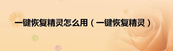 大家好,雨雨来为大家解答以上问题,一键恢复精灵怎么用,一键恢复精灵很多人还不知道,现在让我们一起来看看吧!