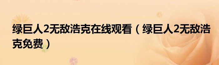 关于绿巨人2无敌浩克在线观看,绿巨人2无敌浩克免费这个很多人还不知道,今天菲菲来为大家解答以上的问题,现在让我们一起来看看吧!